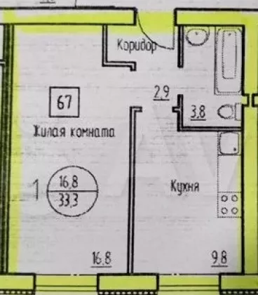 | Площадь, кв.м. | 33.3 |